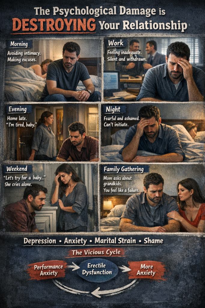 Four years of marriage. No children. Erectile dysfunction so bad I avoided my wife. Sperm count: 6 million.